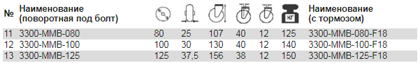 Поворотные колесные опоры, крепление под болт: