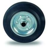 К этой серии относятся колеса со стандартной литой черной резиновой шиной и стальным прессованным ободом. Гальваническое цинковое покрытие защищает обод от влияний окружающей среды. Они отличаются низким уровнем издаваемых при движении шумов, обладают ударопоглощающими и антивибрационными свойствами, устойчивы к разбавленным кислотам и могут использоваться в диапазоне температур от -30С до +60С. Стандартные поставки осуществляются с роликовым подшипником, смазанным долговечной смазкой. Также возможны поставки этих колес с литой резиновой шиной серого цвета (не оставляющей следов на полу).