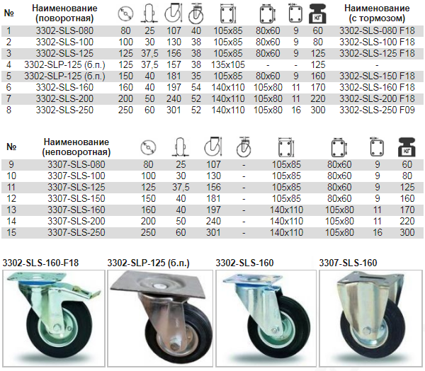 Кронштейны серии 3300 изготовлены прессованием из листовой стали, поворотный узел с двухрядным шарикоподшипником и трубчатой заклепкой. Верхний ряд шариков защищен пластиковым кольцом пыльника. Поверхность деталей оцинкована, поворотные кронштейны смазаны долговечной смазкой и при нормальных условиях эксплуатации не требуют ухода. Позади идущая тормозная система F18 фиксирует поворот колеса и поворотный узел. Кронштейны этой серии комплектуются колесами диаметрами 80, 100, 125, 140, 150, 160, 180, 200 и 250 мм. Максимальная нагрузка 300 кг.