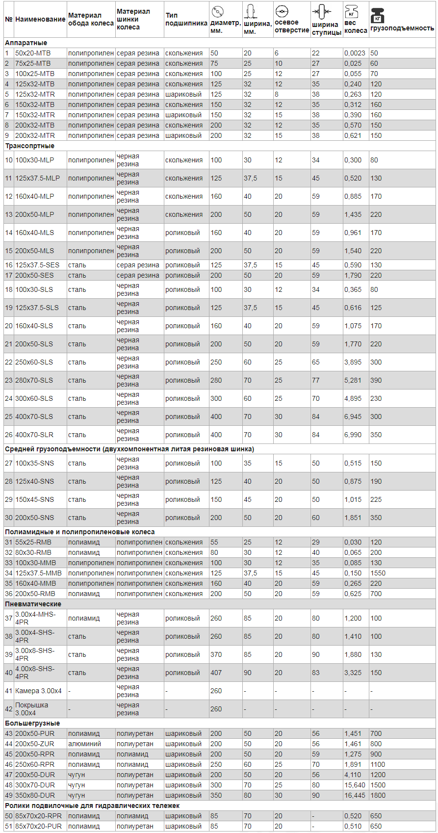 Транспортная серия колесных опор